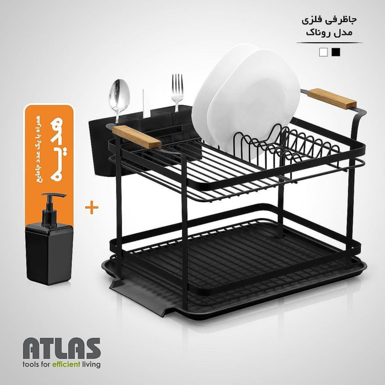 این محصول آبچکان2 طبقه از جنس فلز و دارای رنگ مشکی و سفید الکترواستاتیک کوره می باشد. جاقاشقی و کفی آبگیر پلاستیکی به همراه این آبچکان هستند.دسته های چوبی زیبایی این آبچکان را دو چندان کرده است.همچنین یک عدد جامایع بهمراه این محصول در بسته بندی کارتن موجود میباشد که بعنوان هدیه به مشتری داده میشود.