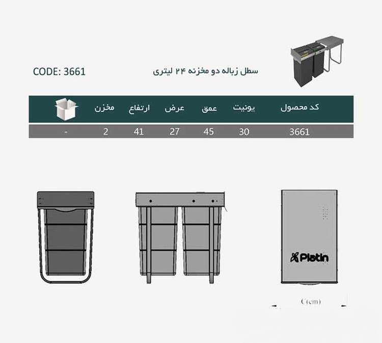 سطل زباله دو مخزنه پلاتین مدل 3661 ظرفیت ۲۴ لیتر