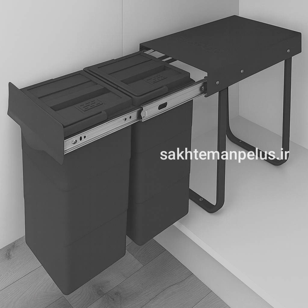 سطل پلاتین زباله ریلی دو مخزنه 24 لیتری کابینتی مدل 3661 – طراحی جمعوجور و کاربردی برای فضای کوچک