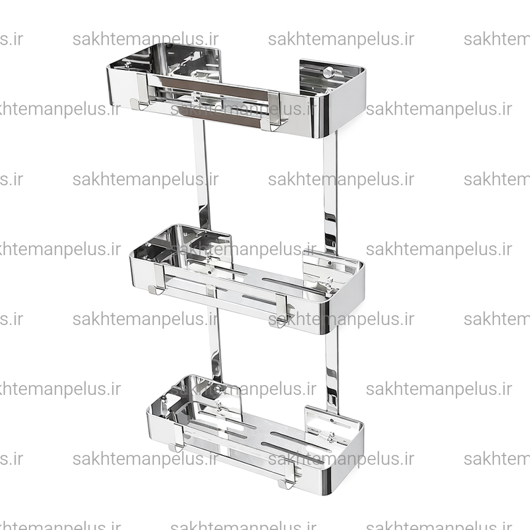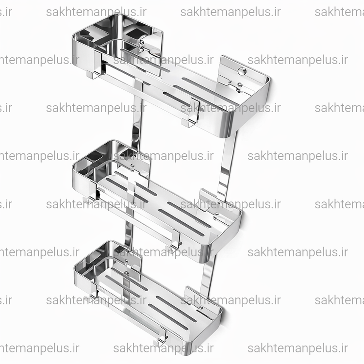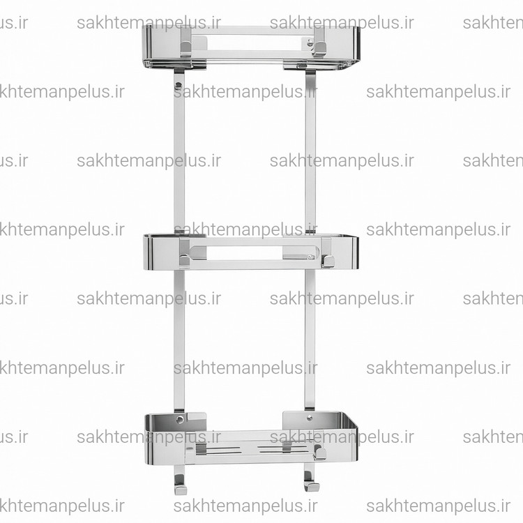 قفسه حمام مدل وسط سه طبقه صفحه ای استیل ۳۰۴ ضد زنگ کروم براق