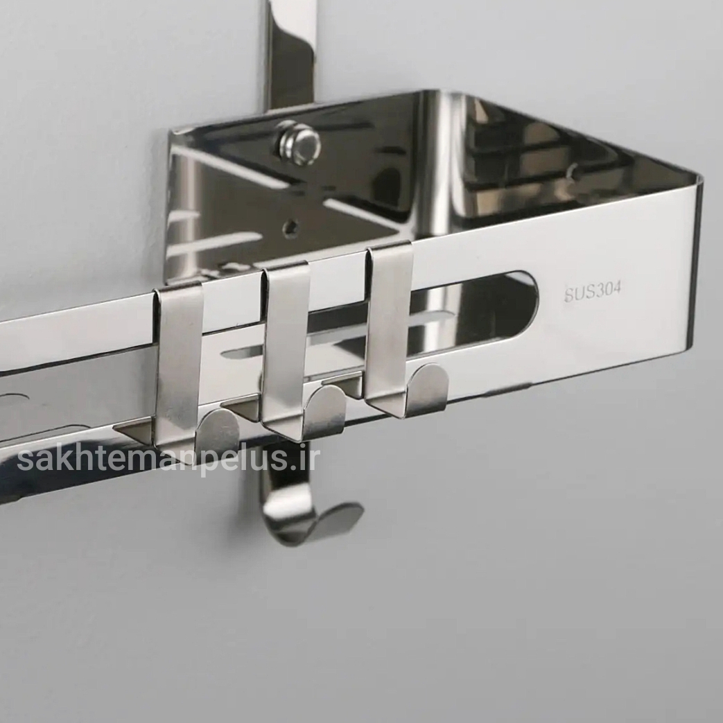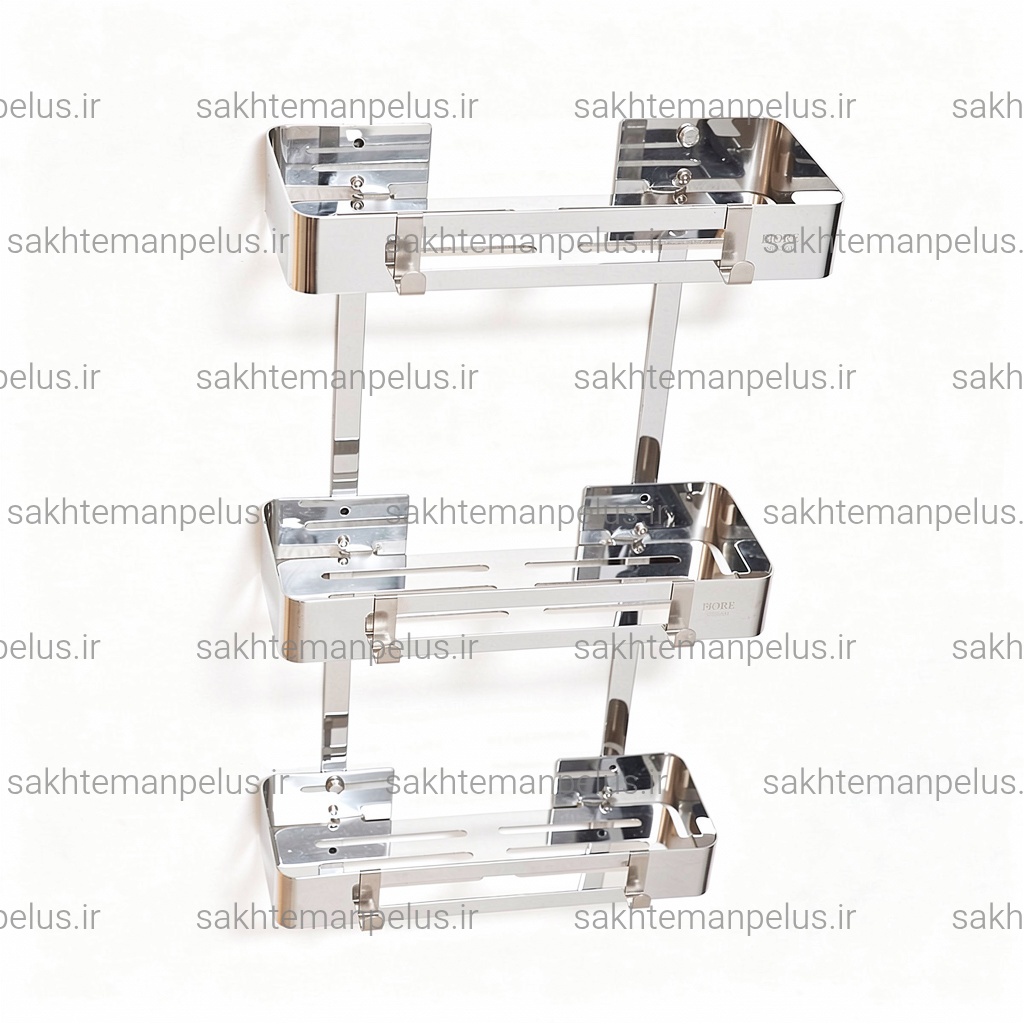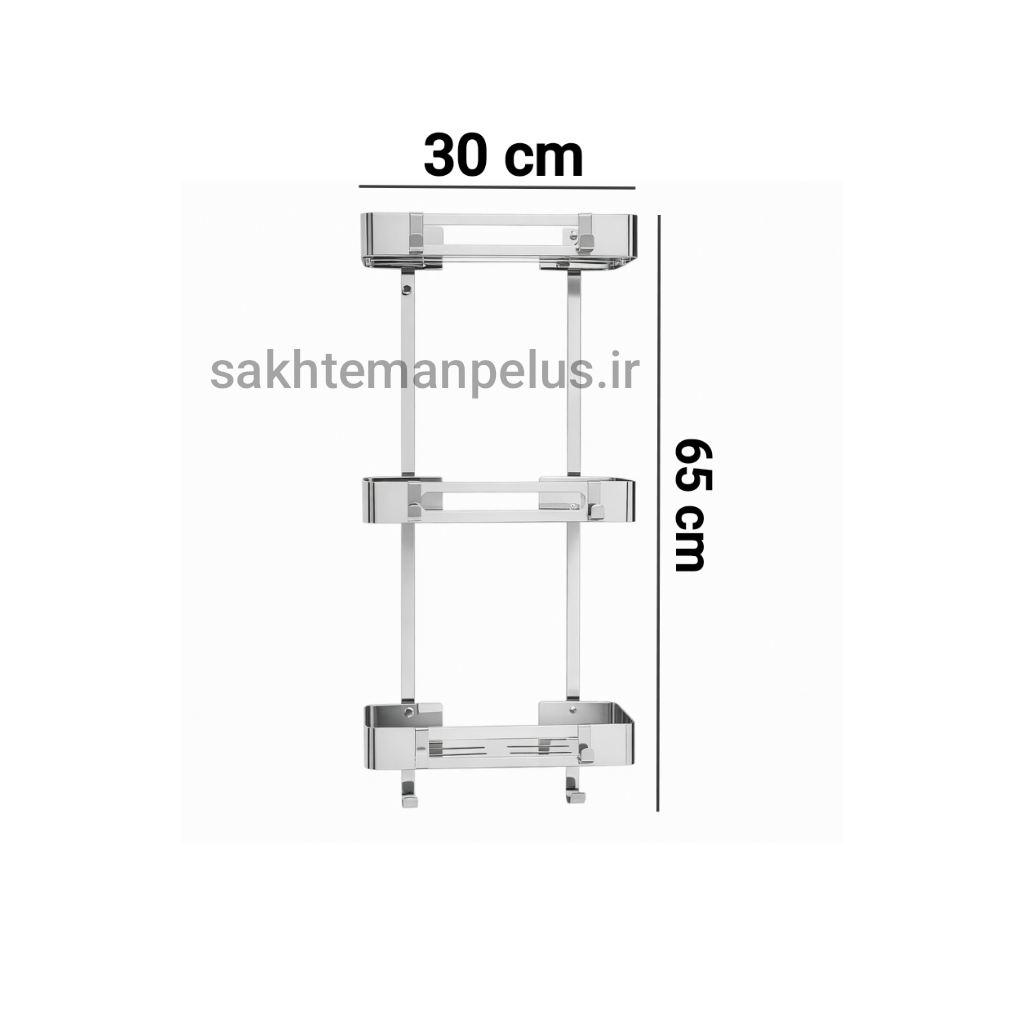 قفسه حمام مدل وسط سه طبقه صفحه ای استیل ۳۰۴ ضد زنگ کروم براق