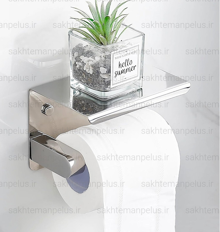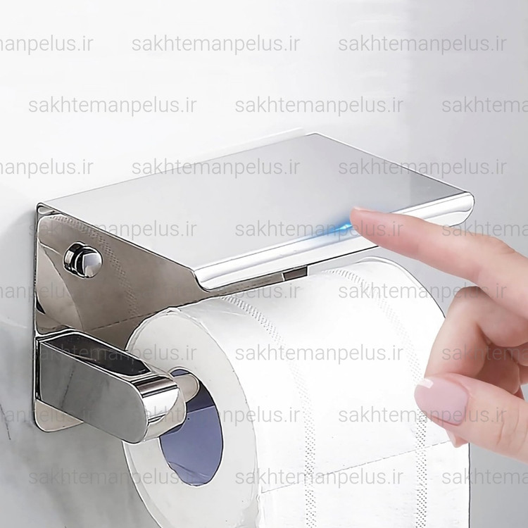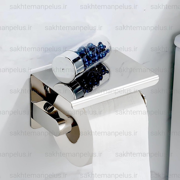 جای دستمال توالت بهمراه نگهدارنده موبایل استیل 304 ضد زنگ استیل براق