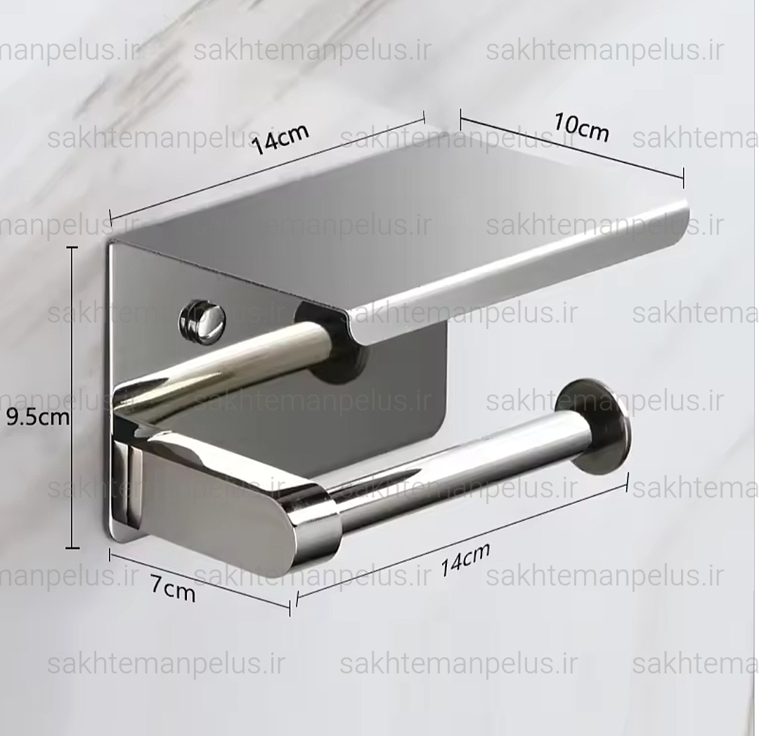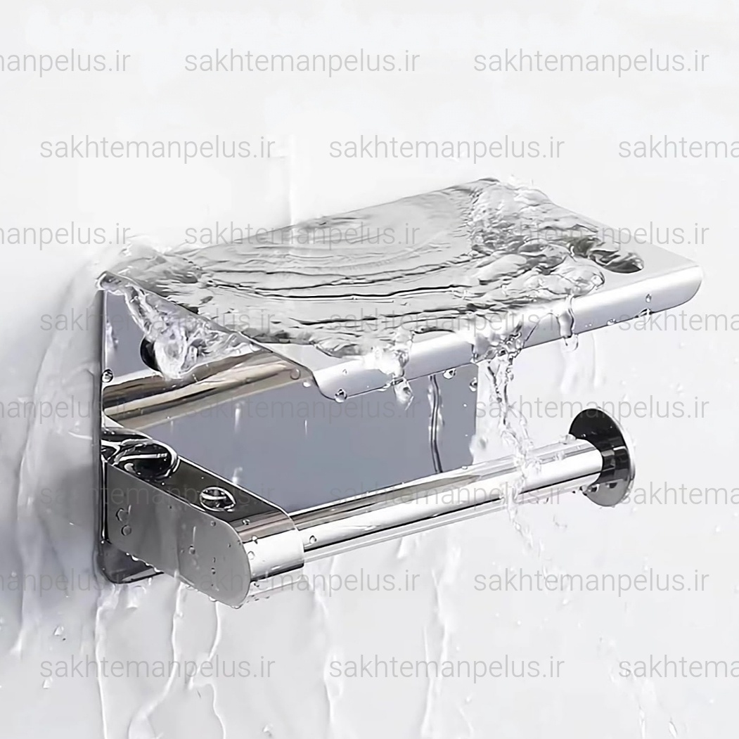 جای دستمال توالت بهمراه نگهدارنده موبایل استیل 304 ضد زنگ استیل براق