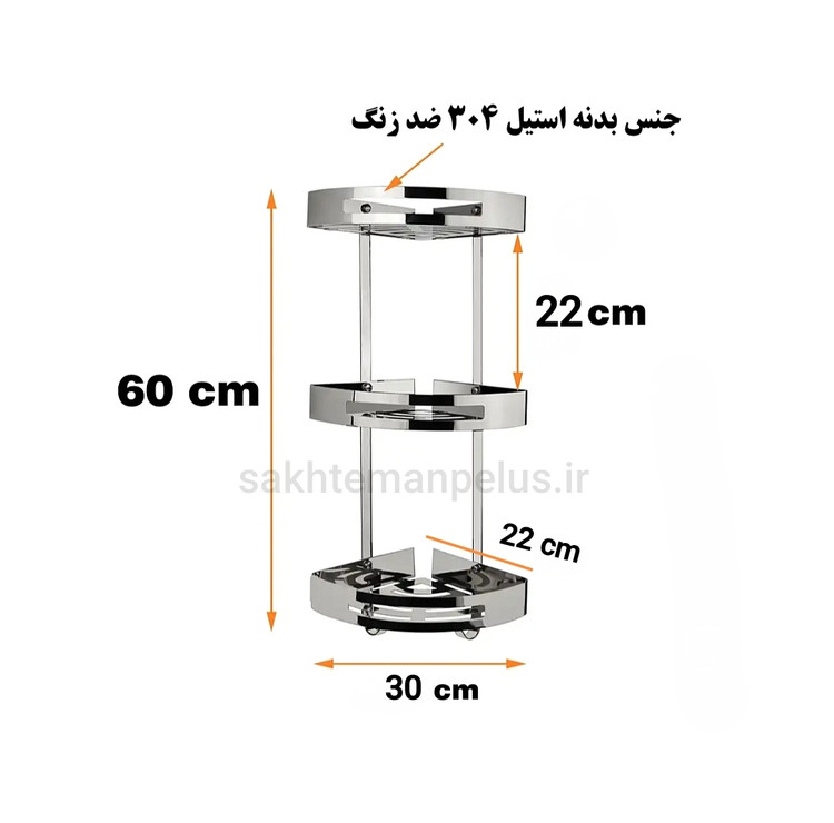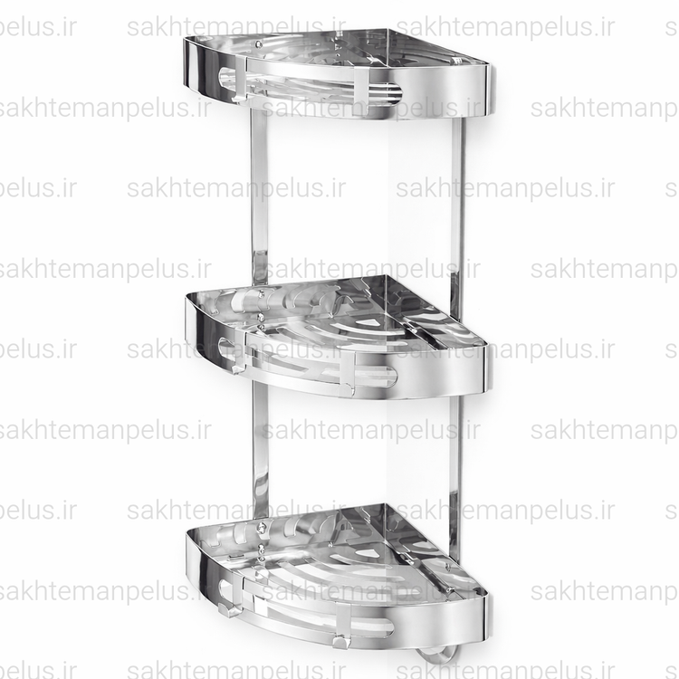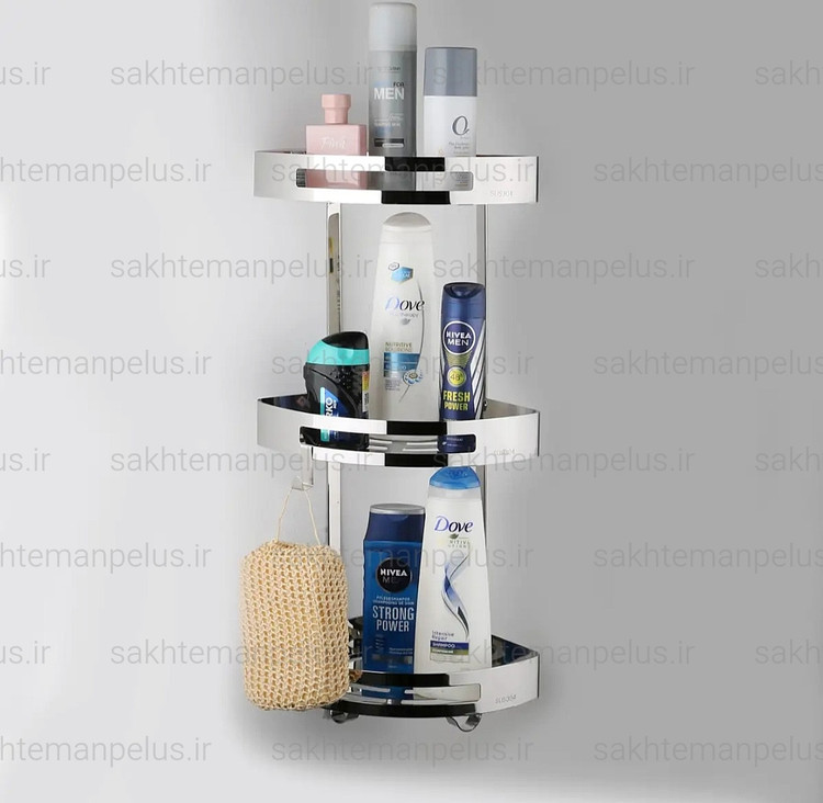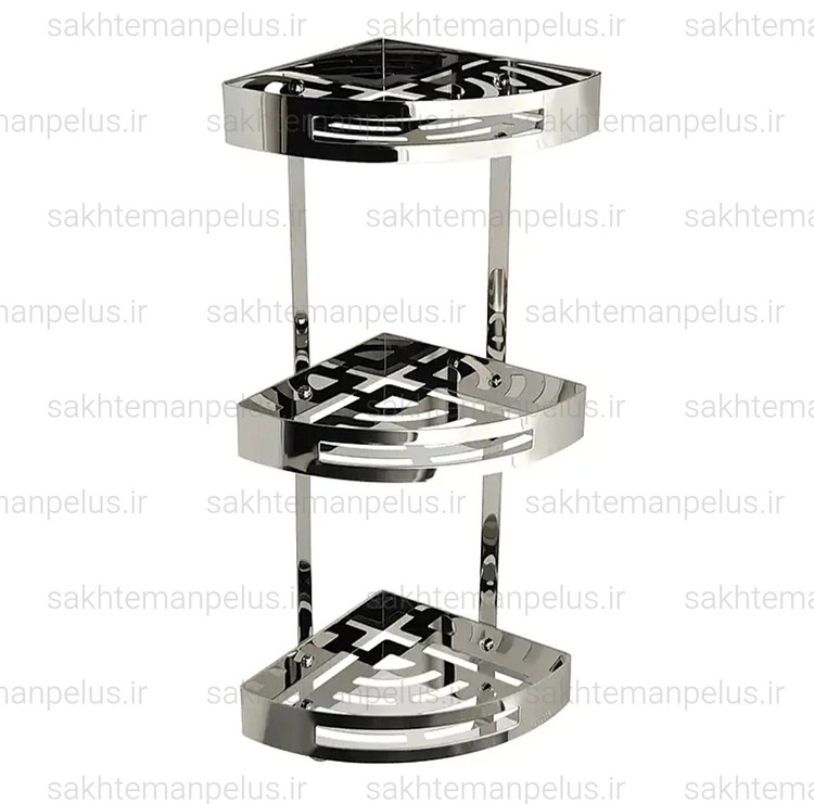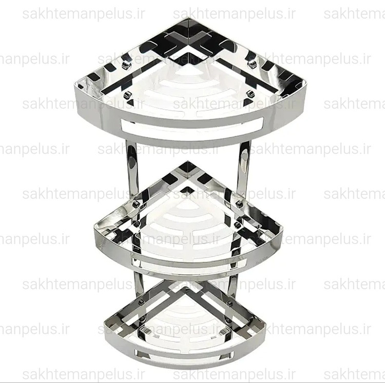 قفسه حمام مدل کنج سه طبقه صفحه ای استیل ۳۰۴ ضد زنگ استیل براق