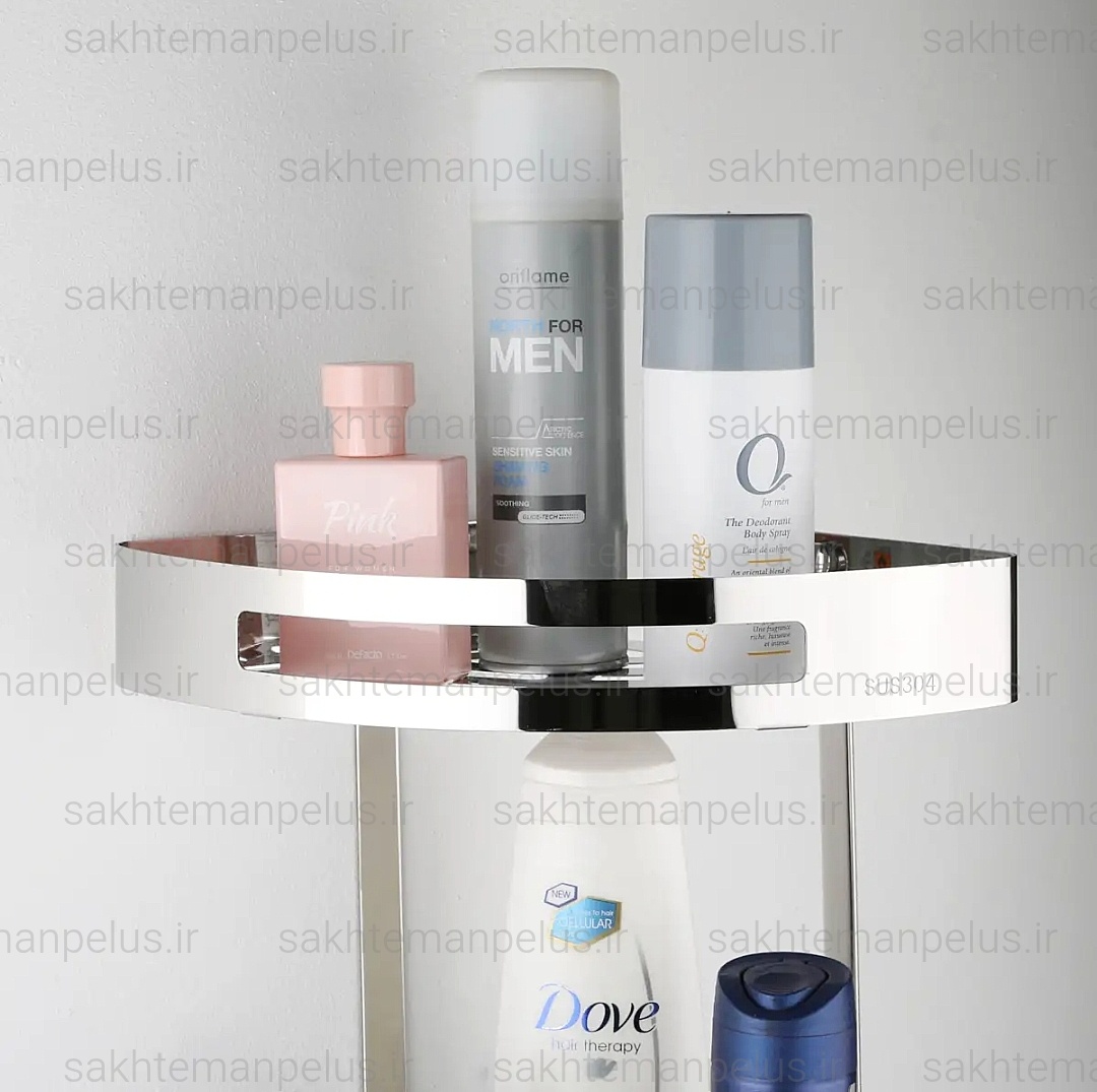 قفسه حمام مدل کنج سه طبقه صفحه ای استیل ۳۰۴ ضد زنگ استیل براق