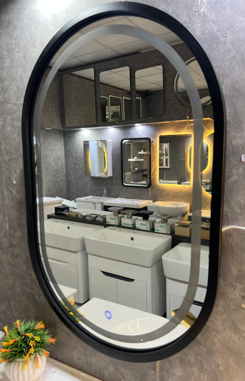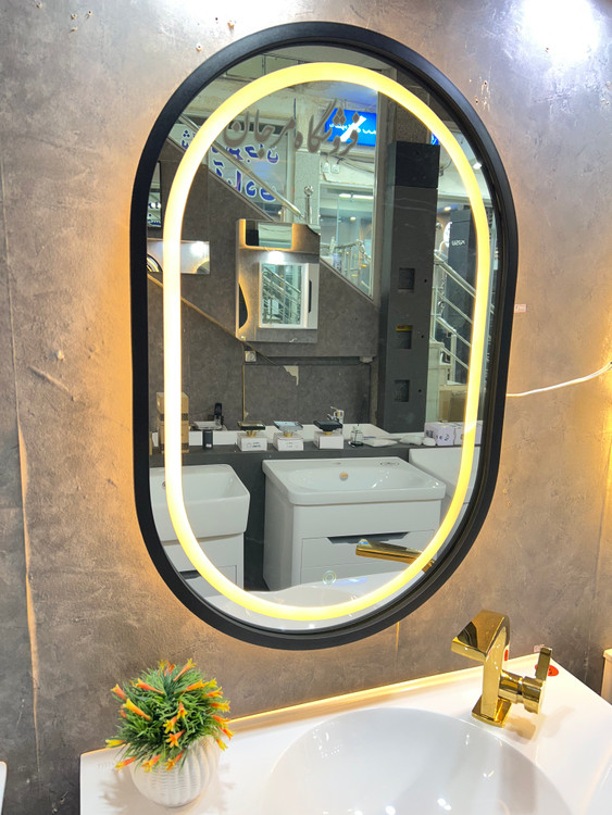 آینه دو سر گرد یا کپسولی بک لایت سند بلاست نور زرد دارای سنسور تاچ