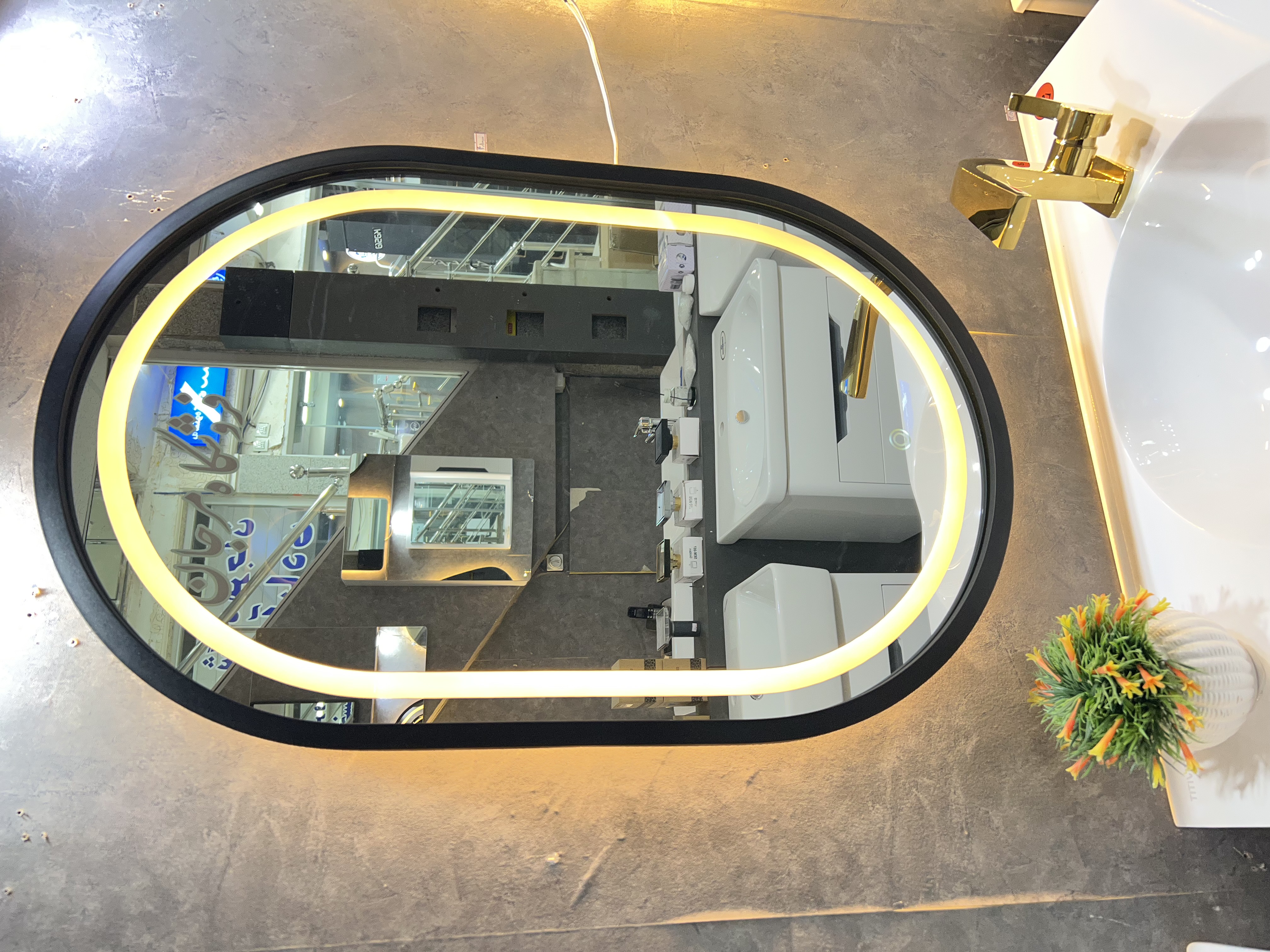 آینه دو سر گرد یا کپسولی بک لایت سند بلاست نور زرد دارای سنسور تاچ