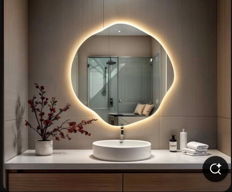 آینه گرد دفرمه بک لایت سنسور تاچ نور زرد