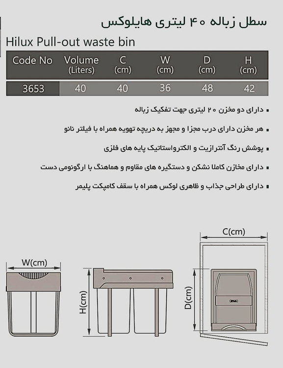 ویژگیهای برجسته سطل زباله هایلوکس 3653 پلاتین