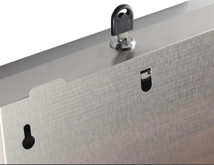 این مخزن دستمال دارای قفل بدنه می باشد تا از دسترسی افراد غیر مسئول جلوگیری شود .