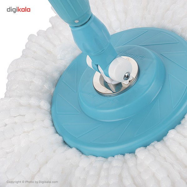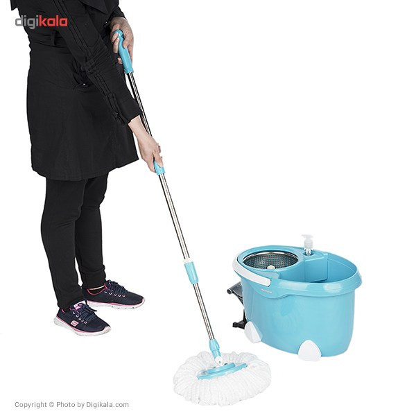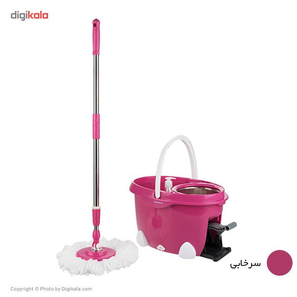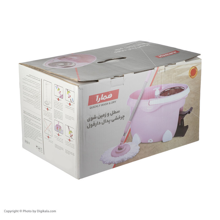 اکثر ما حس میکنیم تا چیزی شسته نشود، پاکیزه نیست. مخصوصا زمانیکه بحث بر سر کف و دیوارهای کاشیکاریشده باشد، آنقدر میشوییم و میساییم تا حس کنیم ذرهای آلودگی باقی نمانده است. قدیمیها مینشستند، سطل آبی کنار خودشان میگذاشتند، یک دستمال برمیداشتند و کف را میشستند. زمینشویهای دستهبلند کاری کردند که دیگر نیاز نباشد روی زمین بنشینیم؛ ولی باز هم مشکلات خود را داشتند. هنگام کار باید آنها را زود به زود میشستیم و با هزار زحمت میچلاندیم. در آخر کار هم آنطور که باید خشک نمیشدند و باز هم آب کثیف رویشان باقی میماند. بعد از آن، نوبت به زمینشویهایی رسید که میتوانستیم بدون فشاردادن روی زمین خشکشان کنیم. سطل و زمینشوی «همارا» مدل «Rotating Bucket 8699» از آن نمونه است. این زمینشوی به همراه یک سطل مخصوص عرضه میشود. چیزی که این زمینشوی را متمایز میکند، پدالی است که در آن تعبیه شده و به وسیلهی آن، سبد داخل سطل میچرخد. دیگر نیازی نیست که کدبانوی خانه با دست سبد را بچرخاند. با این حساب، ذرهای آب کثیف روی نخ باقی نمیماند و میتوان کف آشپزخانه، سرویس بهداشتی یا حمام را بهسادگی شستوشو داد. پیشنهاد ما برای استفاده از این وسیله این است که ابتدا آب را روی زمین کثیف بریزید. سپس زمینشوی را خیس کنید و روی زمین بکشید تا زمین شسته شود. بعد نخ زمینشوی را تا جایی که میتوانید خشک کنید و دوباره خیسش کنید و روی زمین کثیف بکشید. دو یا سه بار که این کار را انجام دهید، دیگر زمین کاملا شسته و خشک خواهد شد.