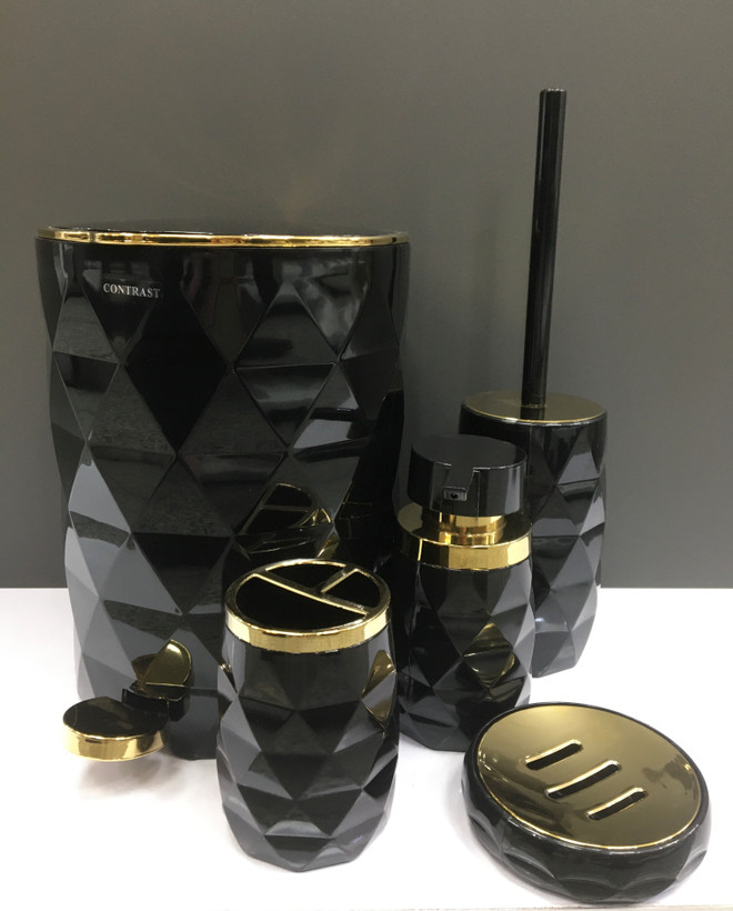 ست سرویس بهداشتی رومیزی برند کنتراست مدل آناناس رنگ مشکی طلایی