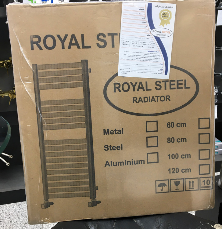 حوله خشکن تمام استیل ۳۰۴ ضد زنگ برند رویال استیل دارای ۱۰ سال ضمانت ،آبکاری با کیفیت و دارای بسته بندی محکم جهت ارسال به شهرستان ها ،دارای بست برای نصب و شیر هواگیری ،در رنگبندی های مختلف :