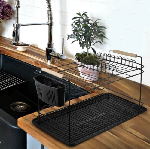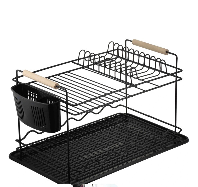 آبچکان یا جا ظرفی فلاور دو طبقه مشکی دسته چوبی کیفیت بسیار خوب و قیمتی استثنایی ،طراحی شیک و ساده