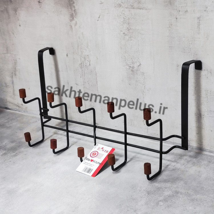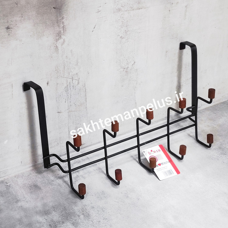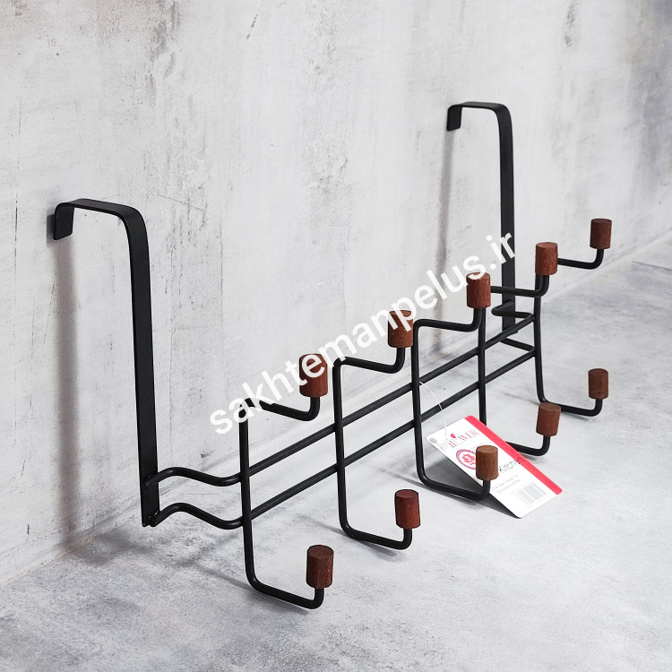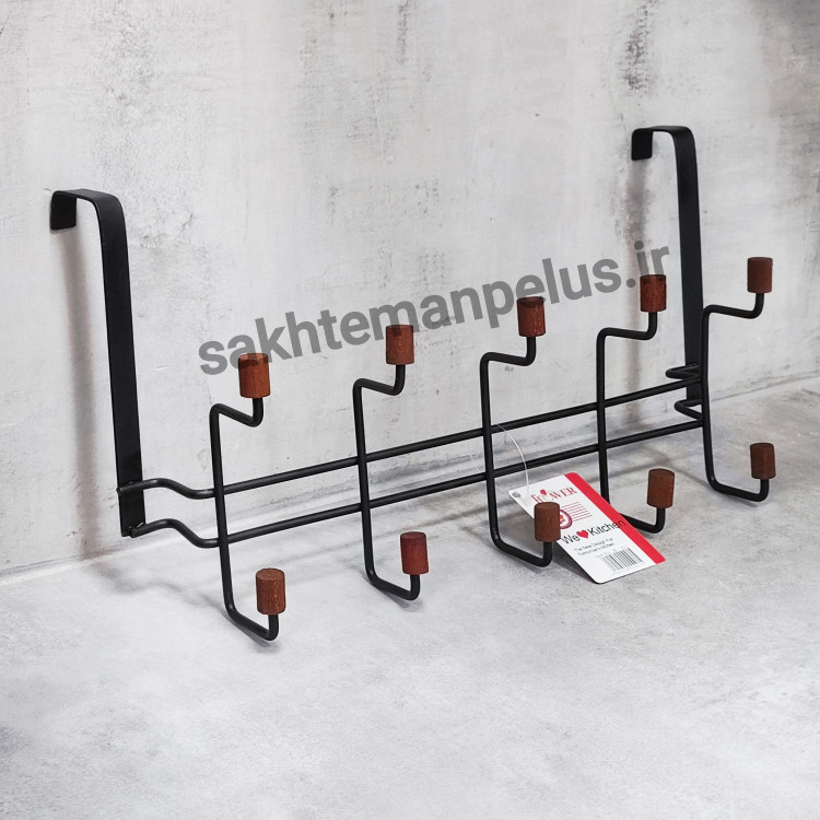 آویز لباس پشت دری فلزی ۱۰ شاخه سر چوب مشکی B-920