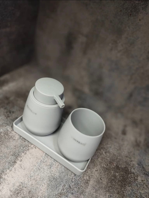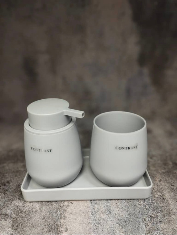 ست سرویس بهداشتی سه تیکه رومیزی طوسی کنتراست