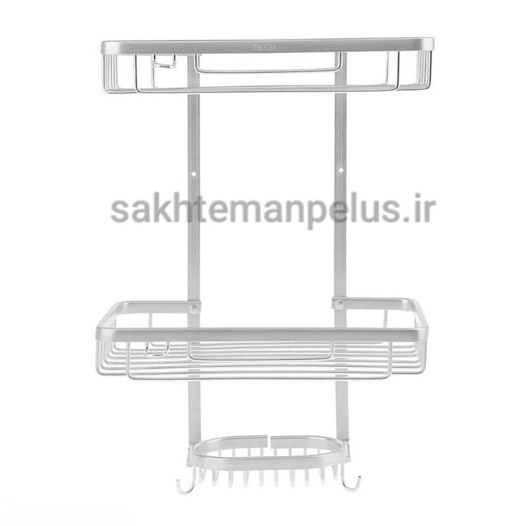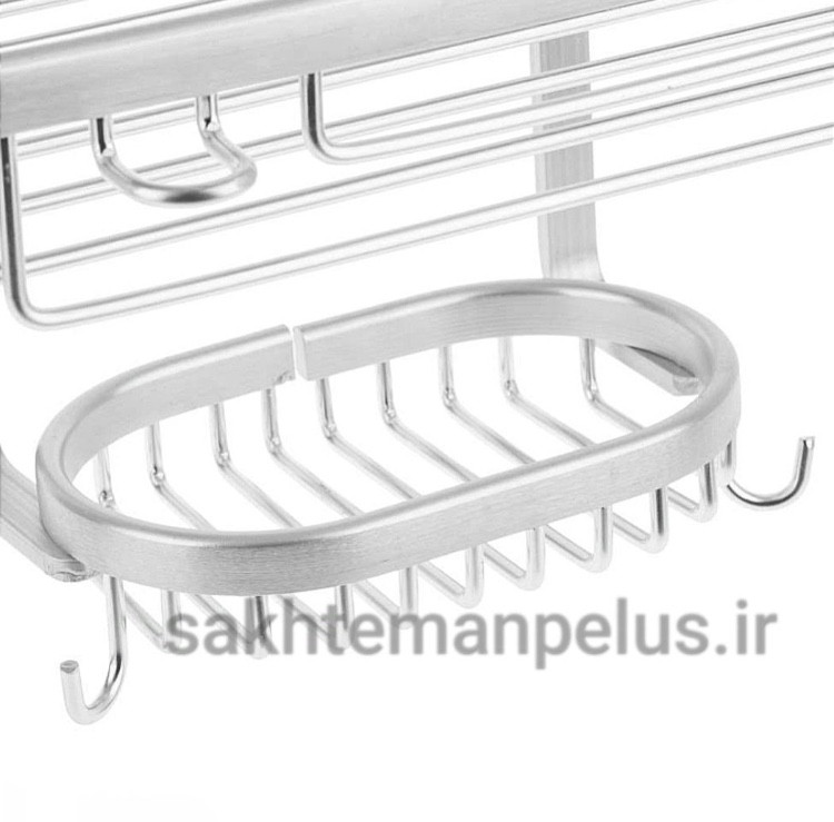 جنس آلومینیوم کاملا ضد آب و ضد زنگ سبک و در عین حال مستحکم روی هر طبقه یک عدد جای ژیلت تعبیه شده روی طبقه کوچک دو عدد آویز لیف وجود دارد این محصول توسط عملیات آنادایز پرداخت شده که باعث افزایش سختی و مقاومت در برابر خوردگی و ایجاد نمای تزئینی در محصول میشود.