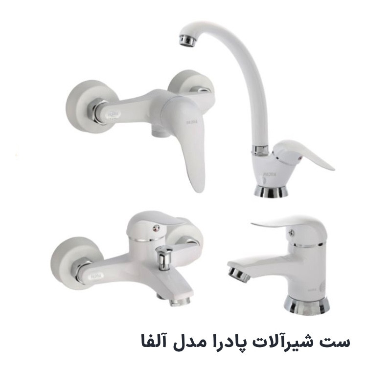 ست ۴ تیکه شیرآلات سفید کروم پادرا مدل آلفا