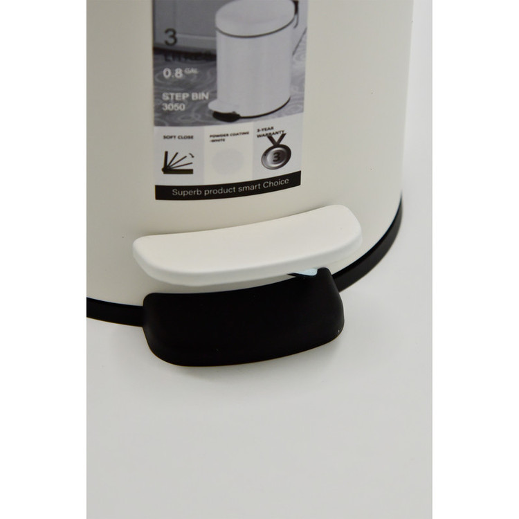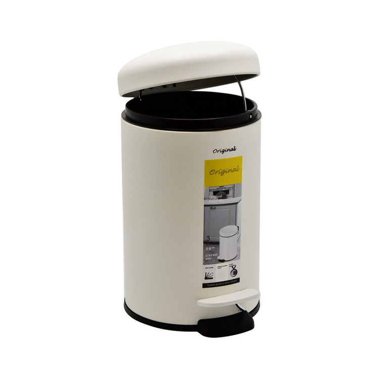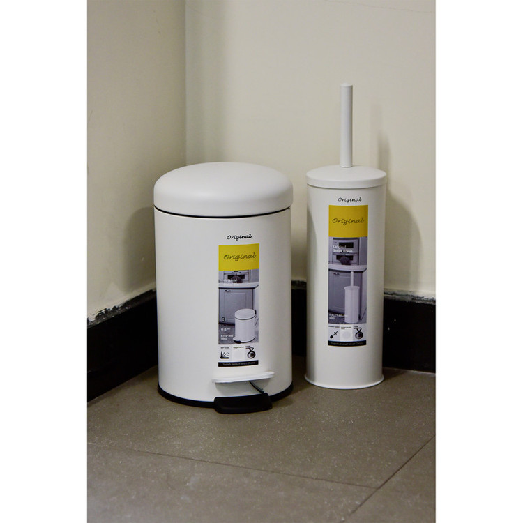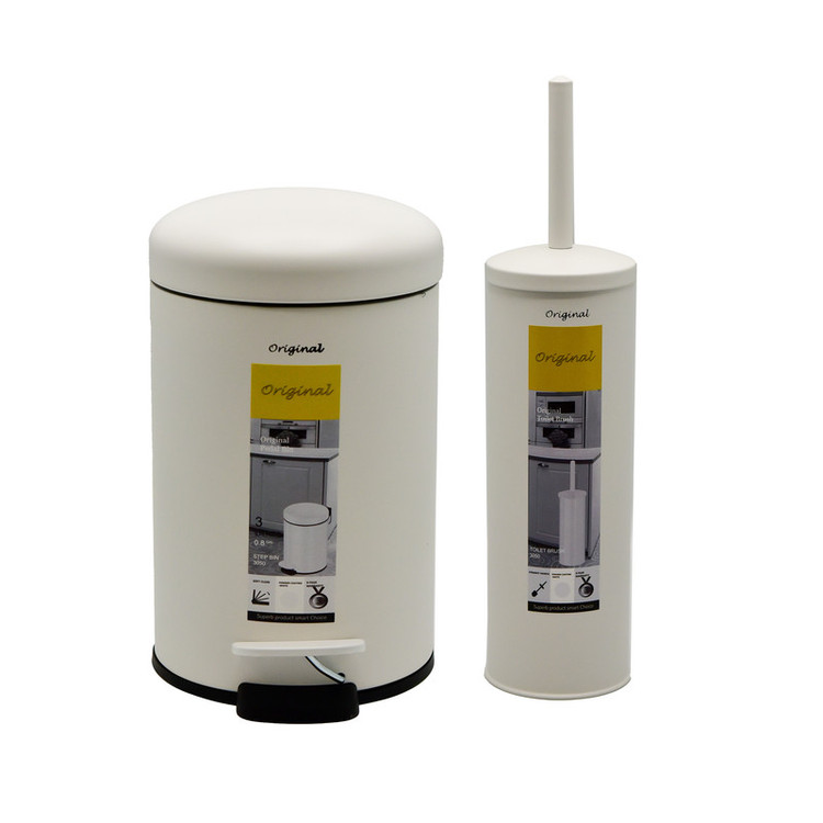 ست سطل زباله و فرچه دستشویی اورجینال مدل پدالی آرام بند 3 لیتر گرد سفید