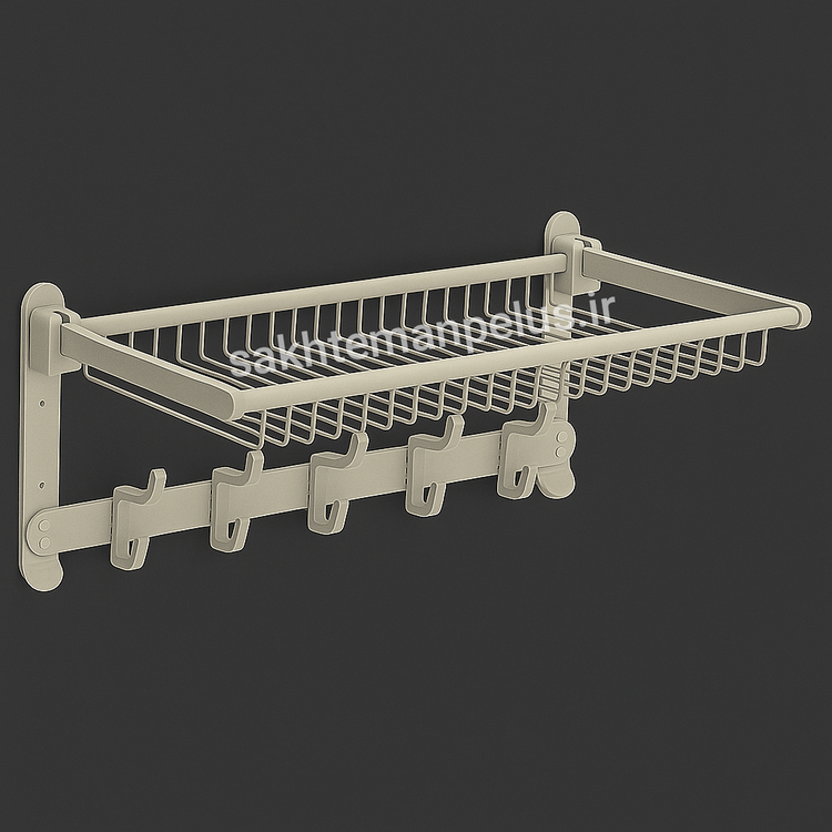 رخت آویز حمام 60 سانت 10 قلاب تاشو دیواری آلومینیومی تی بی کو
