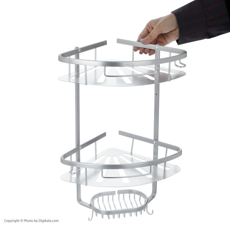 قفسه حمام دیواری تی بی کو مدل کنج دو طبقه آلومینیومی صفحه دار