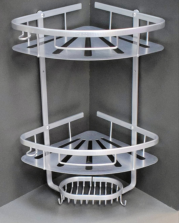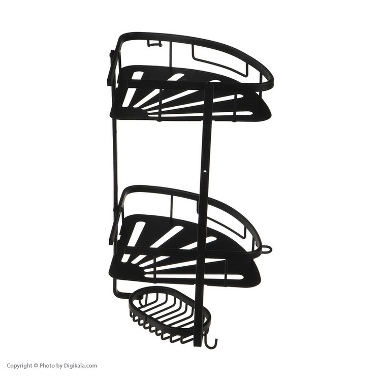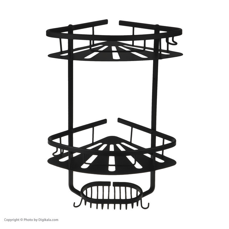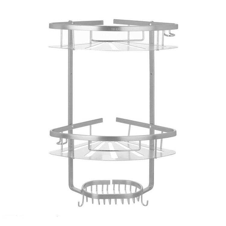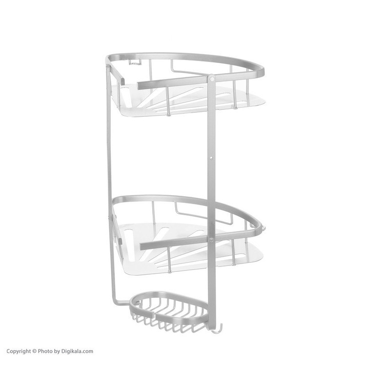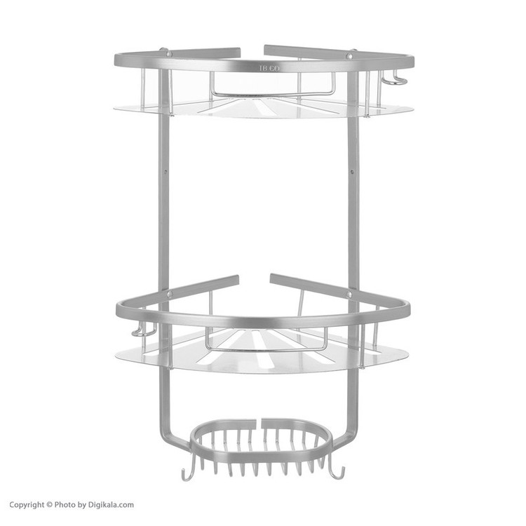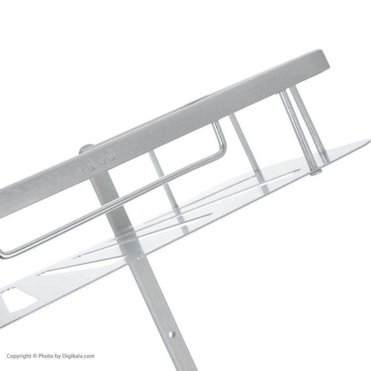 قفسه حمام tbco مدل کنج 2 طبقه از جنس آلومینیوم بوده و به هیچ عنوان زنگ نمی زند و لکه آب روی آن نمی نشیند که این موضوع را میتوان از مزایای بارز محصولات آلومینیومی دانست. این محصول برخلاف نمونه های مشابه قطر صفحات قفسه ها ضخیم که باعث استحکام و ثابت نگه داشتن مواد شوینده روی آن می باشد. مات نمی باشد و در فرآیندی شیمیایی براق می شود که این مهم باعث ست شدن این محصول با انواع اکسسوری های موجوددر بازار می شود. سبک، زیبا و بادوام می باشد. دو قلاب در بالا و دو قلاب در پایین برای آویزان کردن لیف و ژیلت روی این قفسه حمام تعبیه شده است.این کار مخصوص پیچ کردن به سه کنج دیوار می باشد. این محصول دارای دو طبقه با صفحه های مشبک برای گذاشتن شامپو و دیگر وسایل و یک طبقه در پایین مخصوص صابون می باشد. مزیت این محصول نسبت به نمونه های میله ای، ایستایی بیشتر وسایل قرار داده شده در آن می باشد که به جهت تخلیه آب، از صفحات مشبک استفاده شده است. ( در محل جا صابونی به علت جلوگیری از خمیر شدن صابون از میله به جای صفحه استفاده شده است). این محصول در چهار رنگ نقره ای ل.طلایی .مشکی و سفید تولید شده است .به هیچ عنوان زنگ نمیزند به هیچ عنوان سیاه نمیشود و لب پر نمیشود لبه های بلند طبقات این محصول مانع افتادن شامپو و وسایل دیگر می شود . به همراه این محصول دو عدد پیچ و رول پلاک و درپوش پلاستیکی برای اتصال قفسه به دیوار ارائه می شود. در بدنه قفسه محل لازم جهت عبور پیچ اتصالی به دیوار تعبیه شده است.