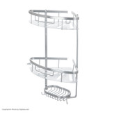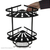 قفسه حمام tbco مدل کنج 2 طبقه از جنس آلومینیوم بوده و به هیچ عنوان زنگ نمی زند و لکه آب روی آن نمی نشیند که این موضوع را میتوان از مزایای بارز محصولات آلومینیومی دانست. این محصول برخلاف نمونه های مشابه قطر صفحات قفسه ها ضخیم که باعث استحکام و ثابت نگه داشتن مواد شوینده روی آن می باشد. مات نمی باشد و در فرآیندی شیمیایی براق می شود که این مهم باعث ست شدن این محصول با انواع اکسسوری های موجوددر بازار می شود. سبک، زیبا و بادوام می باشد. دو قلاب در بالا و دو قلاب در پایین برای آویزان کردن لیف و ژیلت روی این قفسه حمام تعبیه شده است.این کار مخصوص پیچ کردن به سه کنج دیوار می باشد. این محصول دارای دو طبقه با صفحه های مشبک برای گذاشتن شامپو و دیگر وسایل و یک طبقه در پایین مخصوص صابون می باشد. مزیت این محصول نسبت به نمونه های میله ای، ایستایی بیشتر وسایل قرار داده شده در آن می باشد که به جهت تخلیه آب، از صفحات مشبک استفاده شده است. ( در محل جا صابونی به علت جلوگیری از خمیر شدن صابون از میله به جای صفحه استفاده شده است). این محصول در چهار رنگ نقره ای ل.طلایی .مشکی و سفید تولید شده است .به هیچ عنوان زنگ نمیزند به هیچ عنوان سیاه نمیشود و لب پر نمیشود لبه های بلند طبقات این محصول مانع افتادن شامپو و وسایل دیگر می شود . به همراه این محصول دو عدد پیچ و رول پلاک و درپوش پلاستیکی برای اتصال قفسه به دیوار ارائه می شود. در بدنه قفسه محل لازم جهت عبور پیچ اتصالی به دیوار تعبیه شده است.