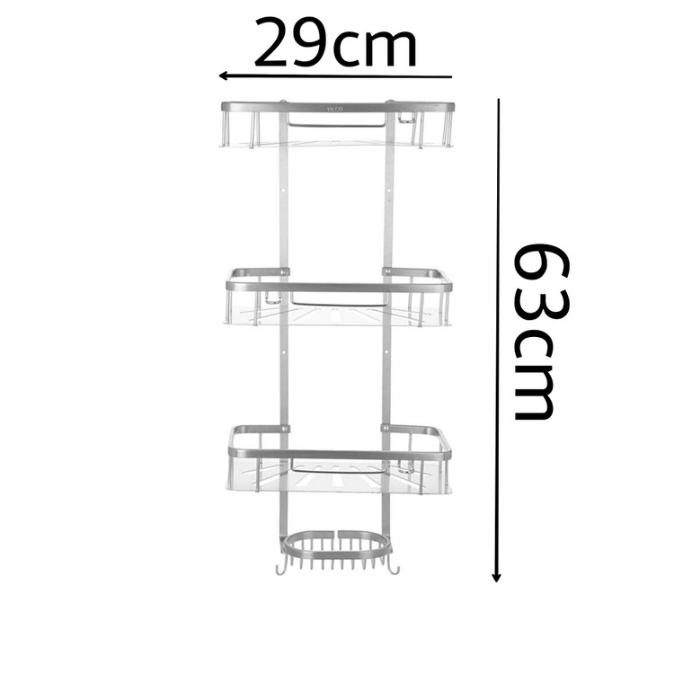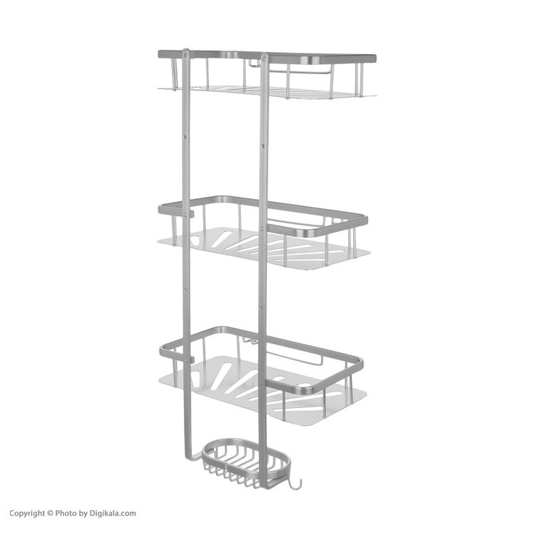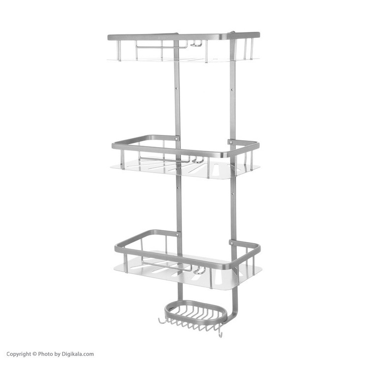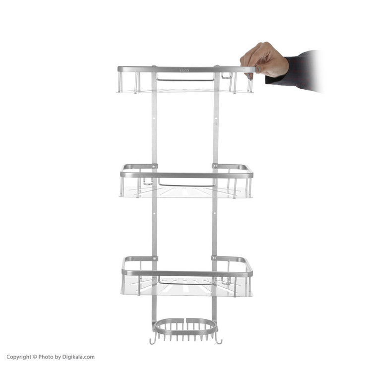 قفسه حمام تی بی کو مدل وسط صفحه ای دیواری سه طبقه آلومینیومی نقره ای