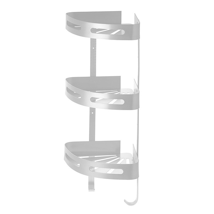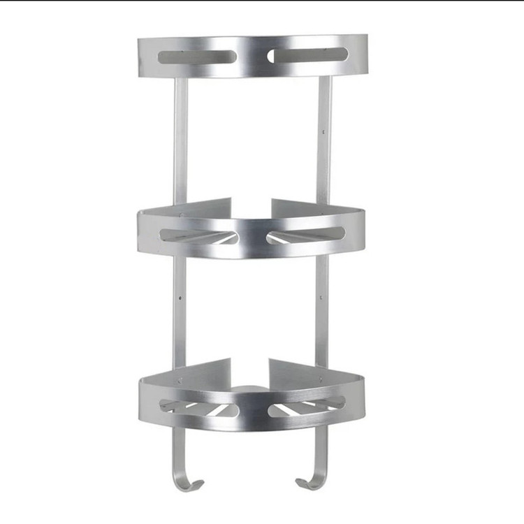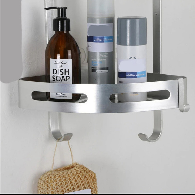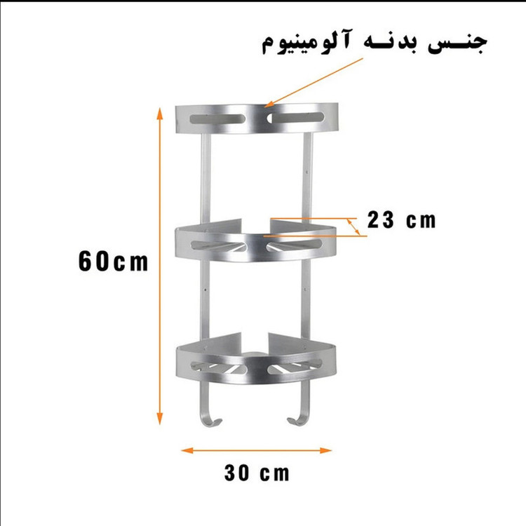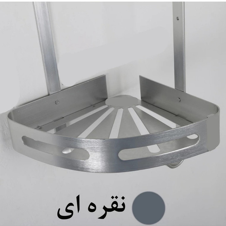 قفسه حمام تی بی کو دیواری مدل کنج صفحه ای تسمه پهن آلومینیومی سه طبقه نقره ای