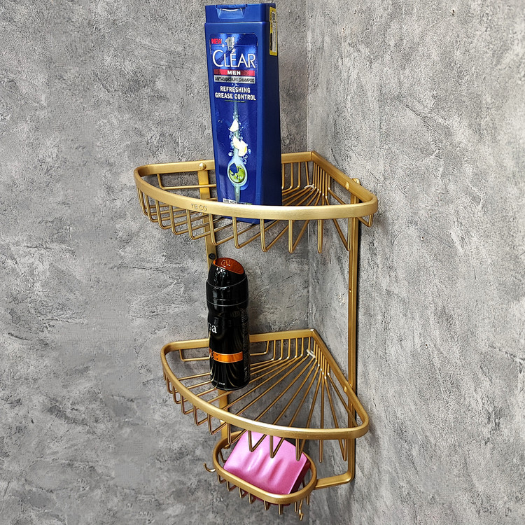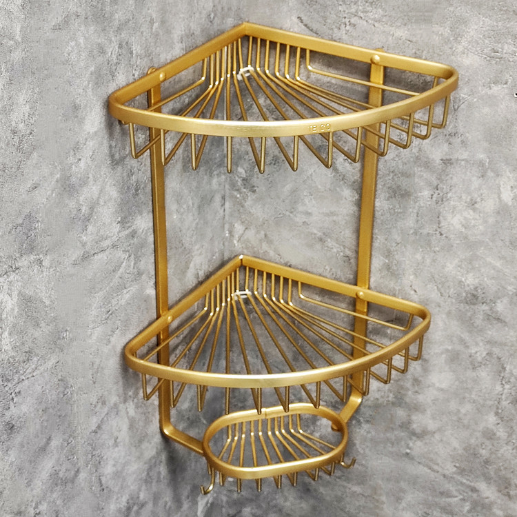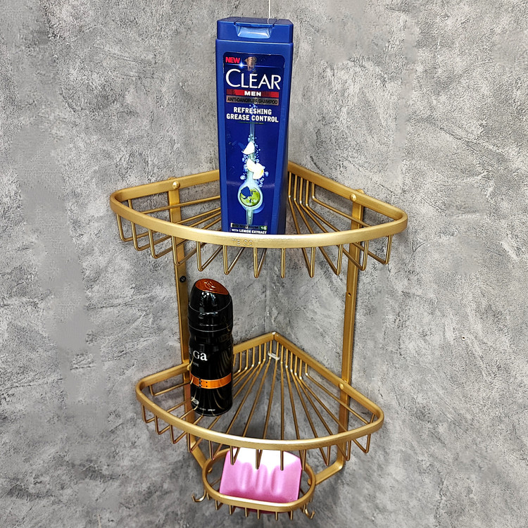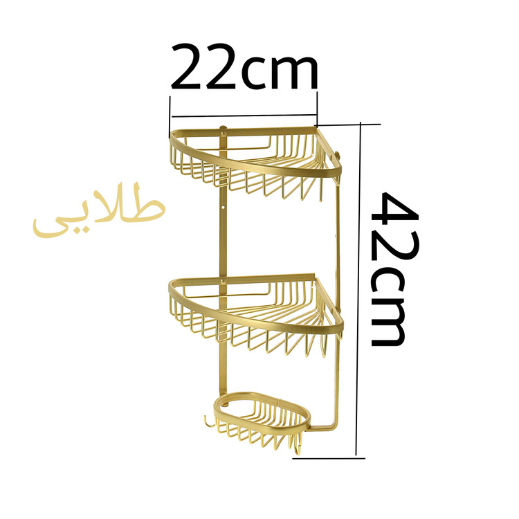 قفسه حمام مدل کنج خورشیدی سبدی دیواری تی بی کو دو طبقه آلومینیومی طلایی