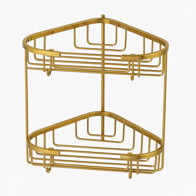 قفسه حمام دو طبقه مناسب برای کنج و با کیفیت بالای ساخته شده است.این محصول از جنس برنج و به خاطر ضدآب و ضد زنگ بودن مناسب برای استفاده در حمام و محیط مرطوب است.ظاهر زیبا و نصب آسان و فضای زیاد برای قرار دادن شویندهها از ویژگیهای این محصول است. این قفسه حمام دارای دو طبقه مشبک و هر طبقه دارای جای دو آویز است.