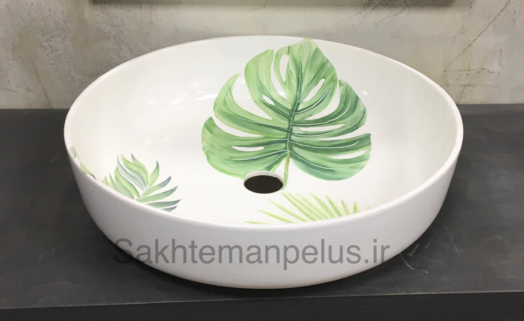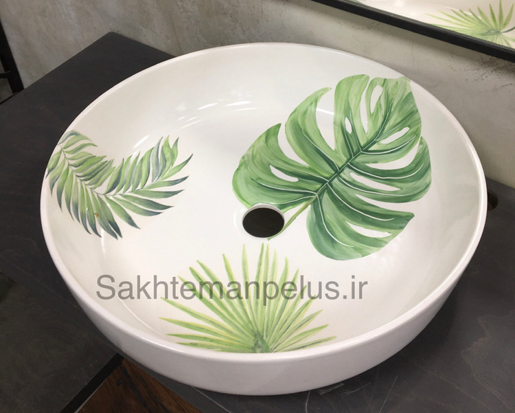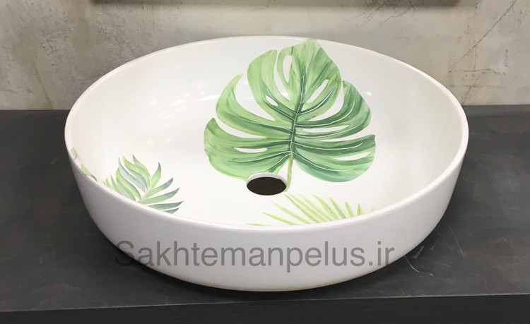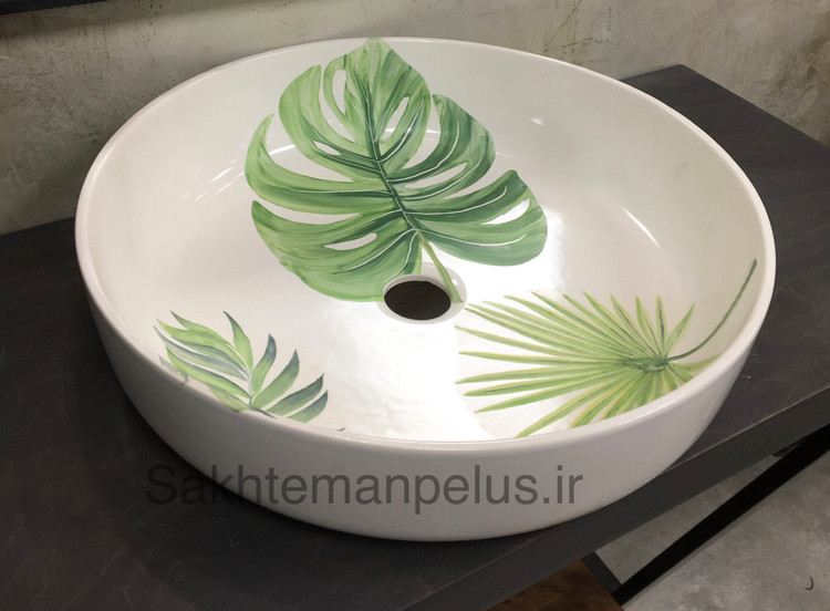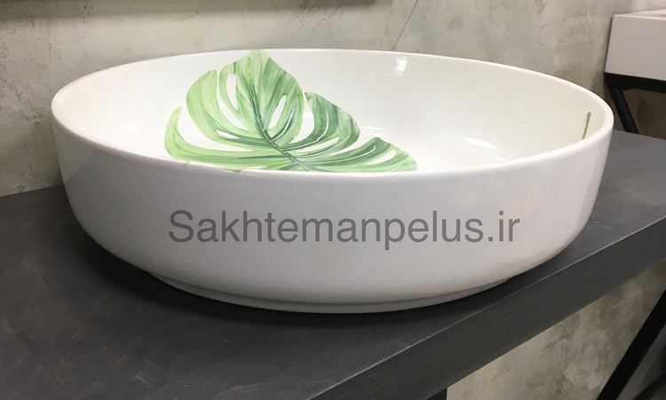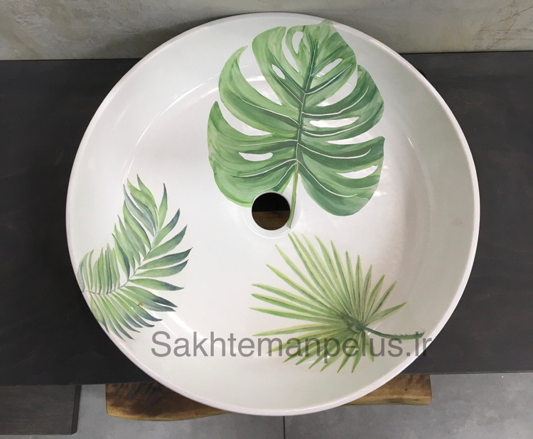 کاسه روشویی رنگی گرد طرح برگ نقاشی