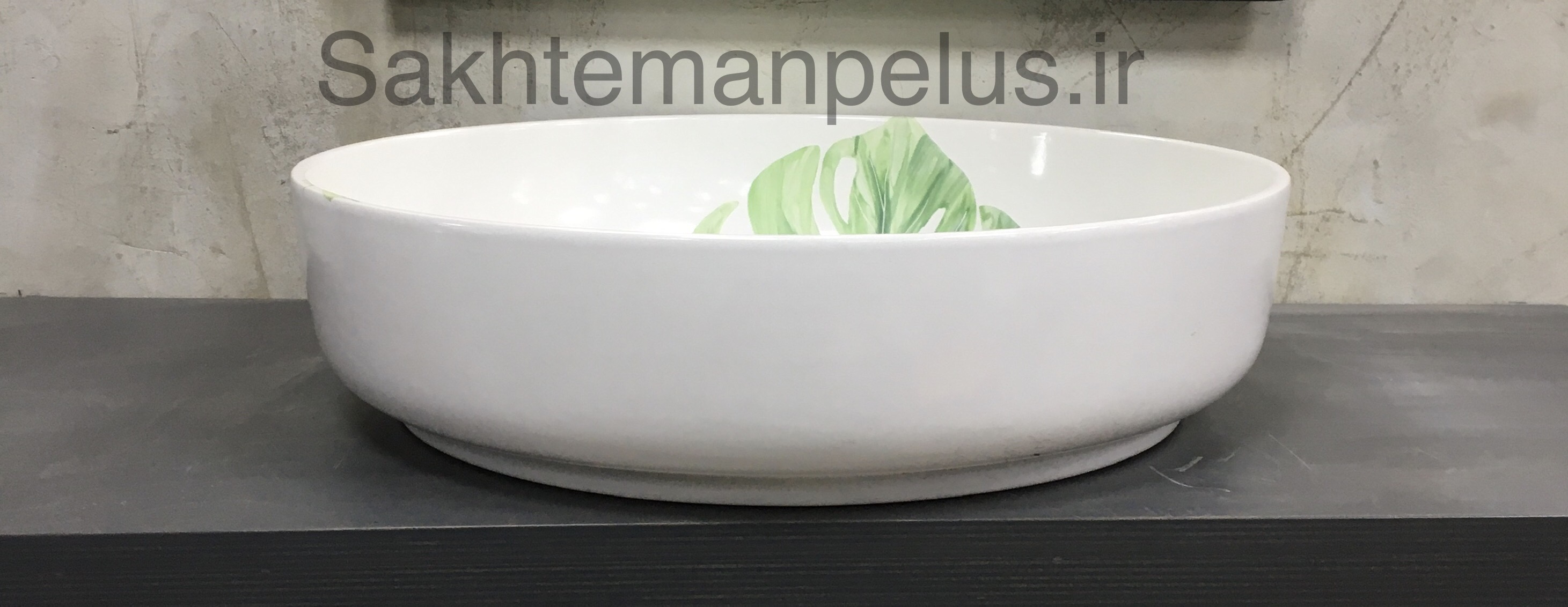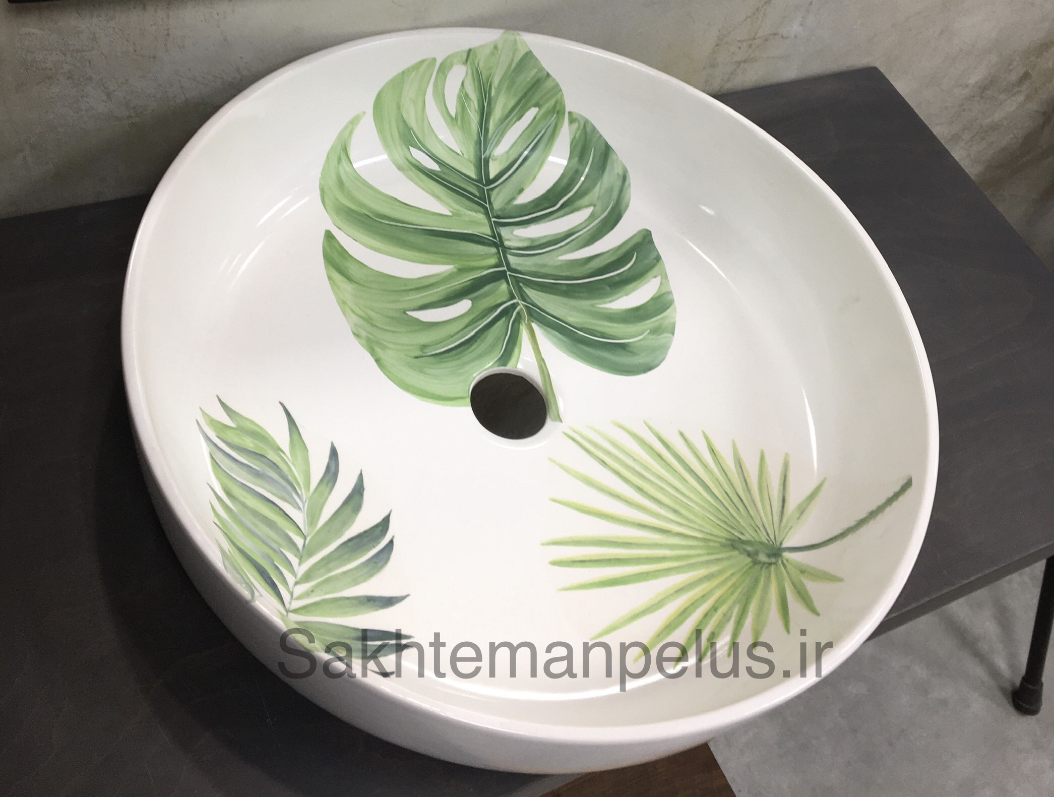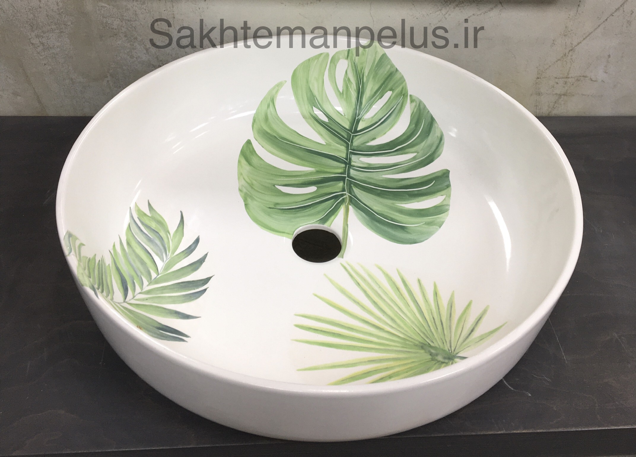 کاسه روشویی رنگی گرد طرح برگ نقاشی