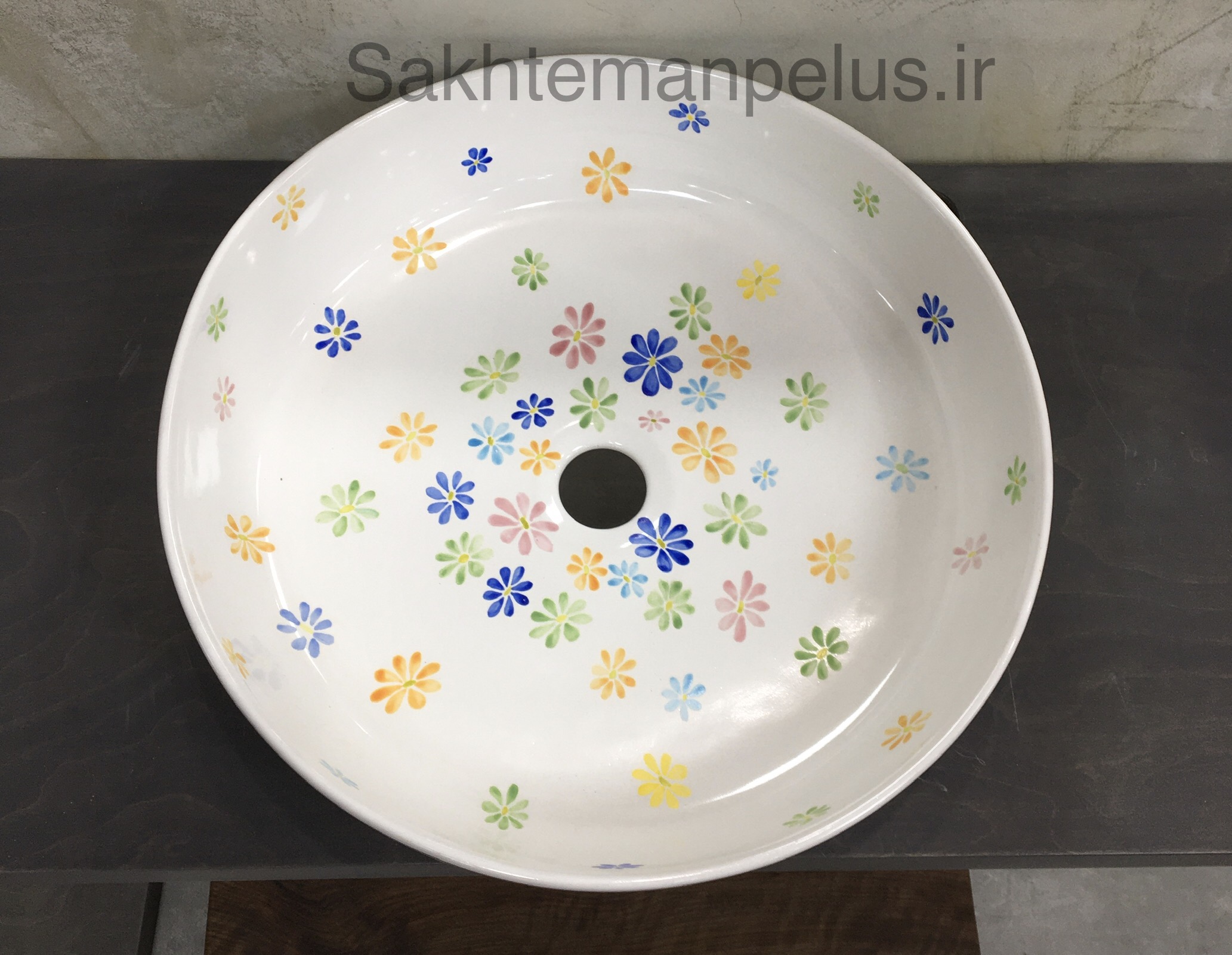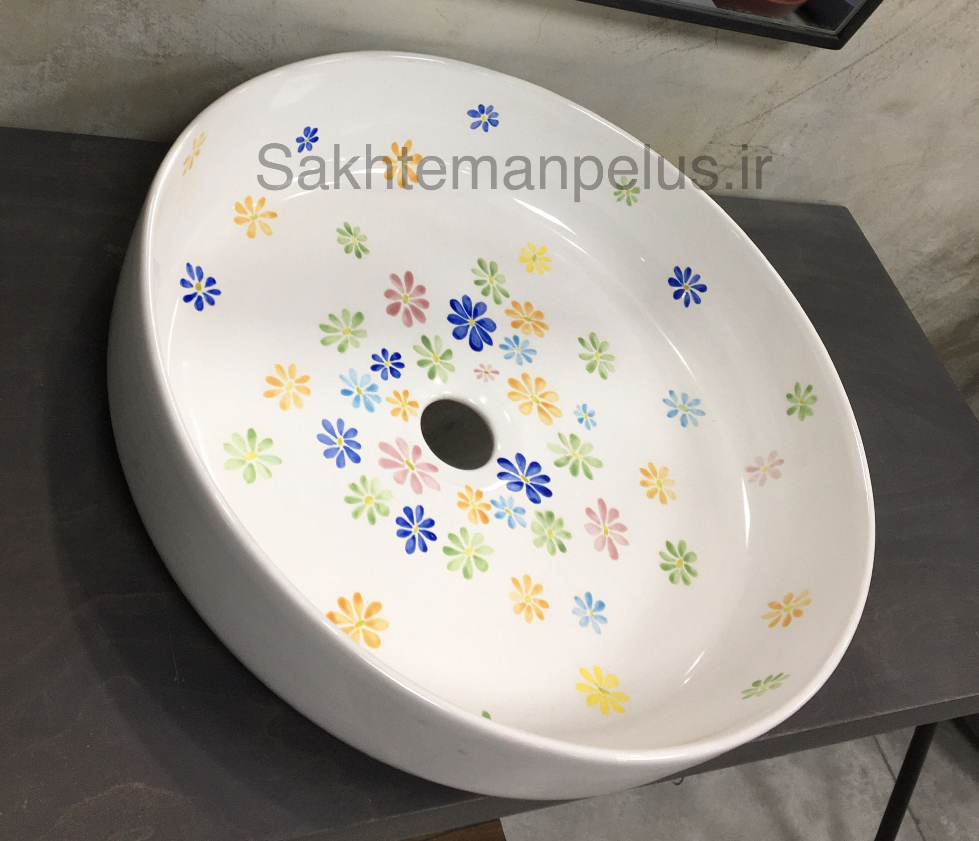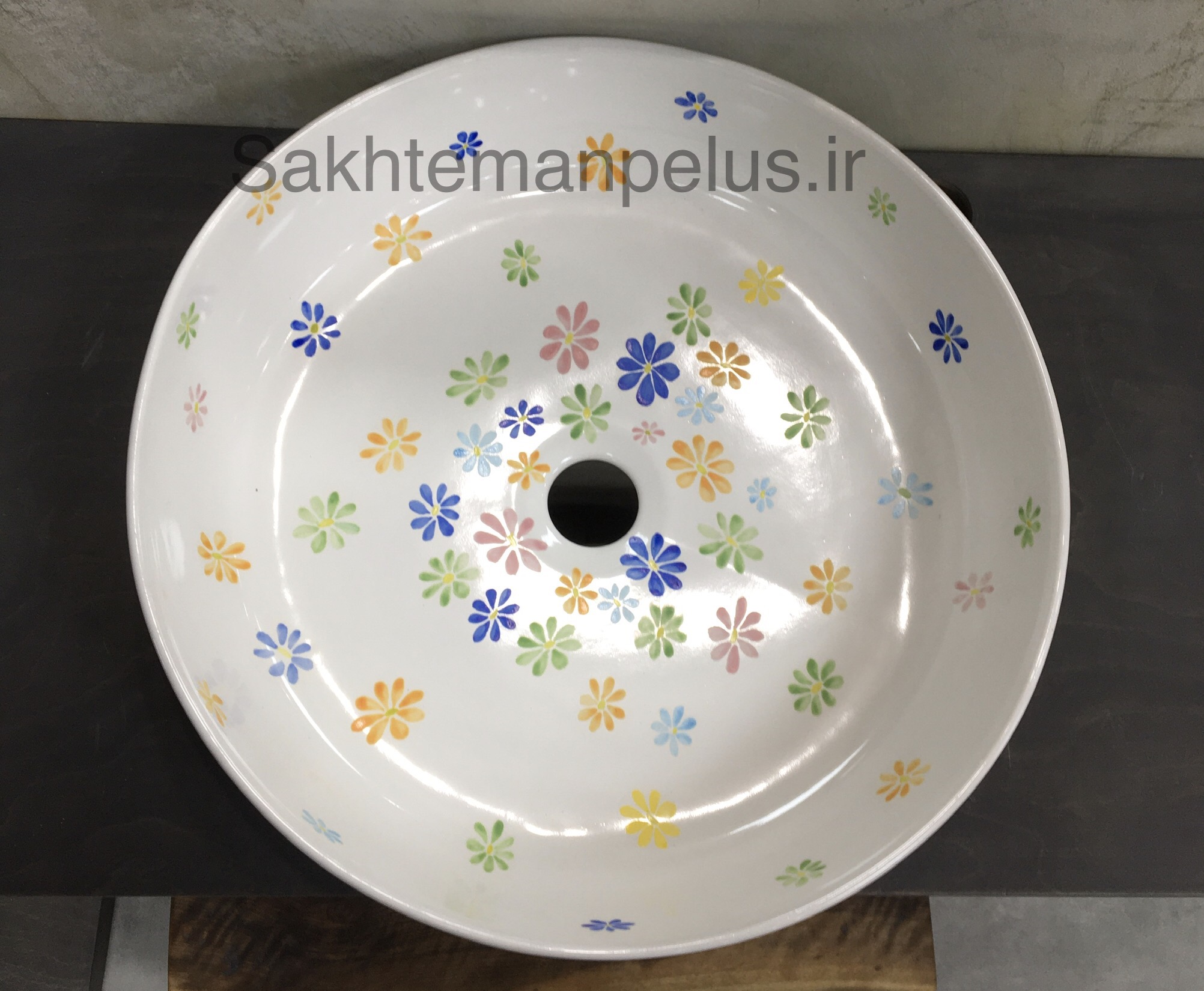 سنگ روشویی گرد طرح گل ریز نقاشی