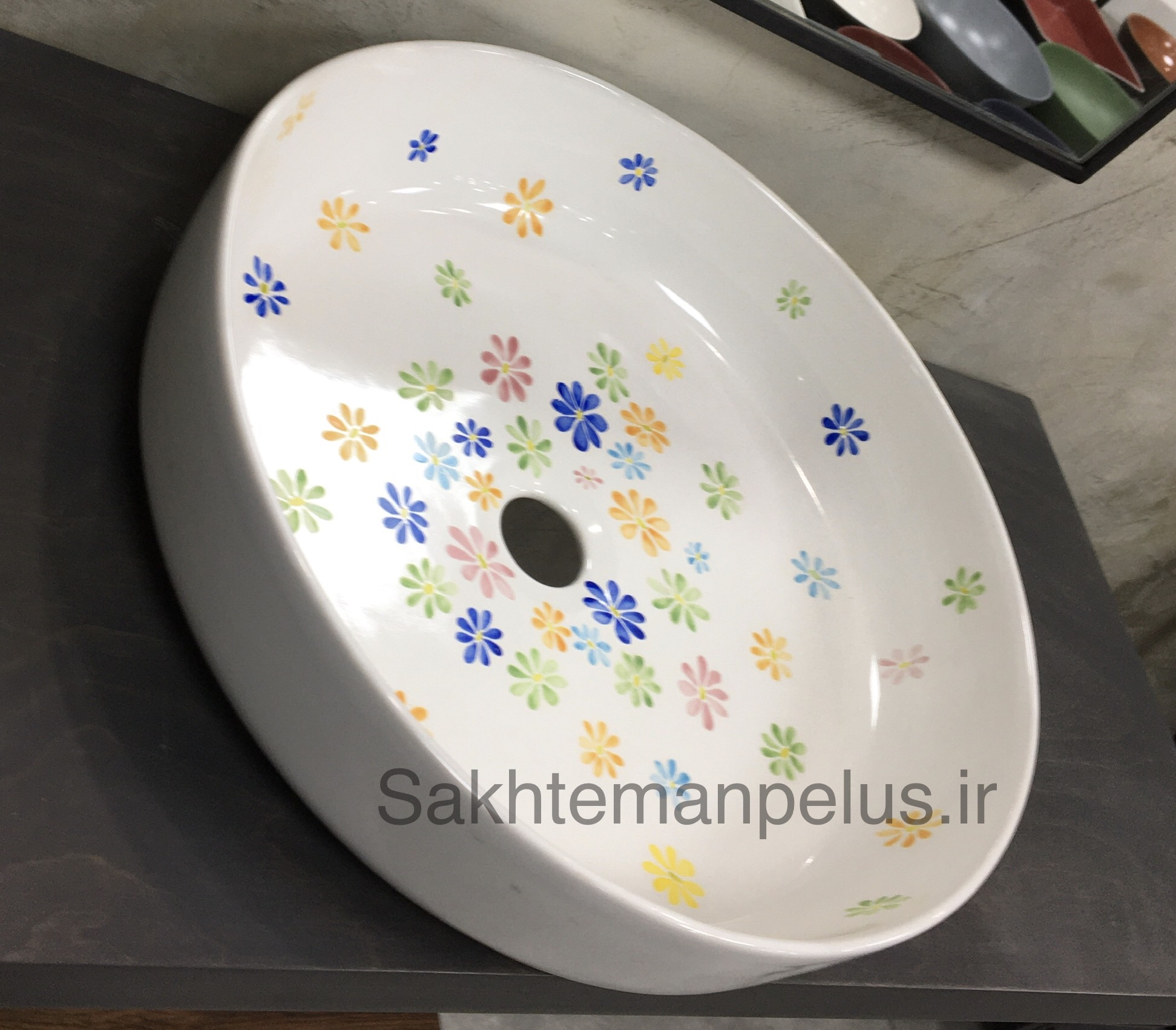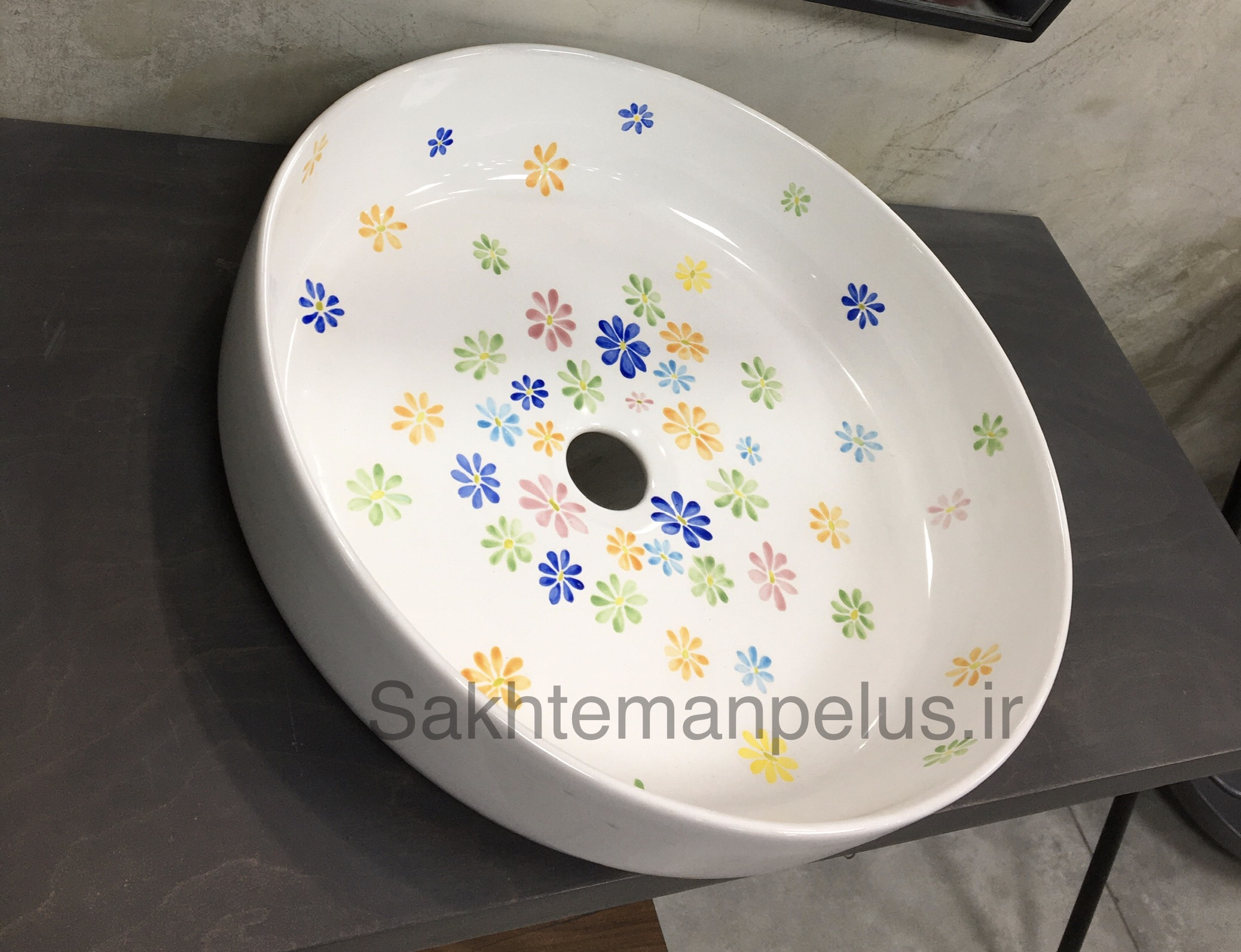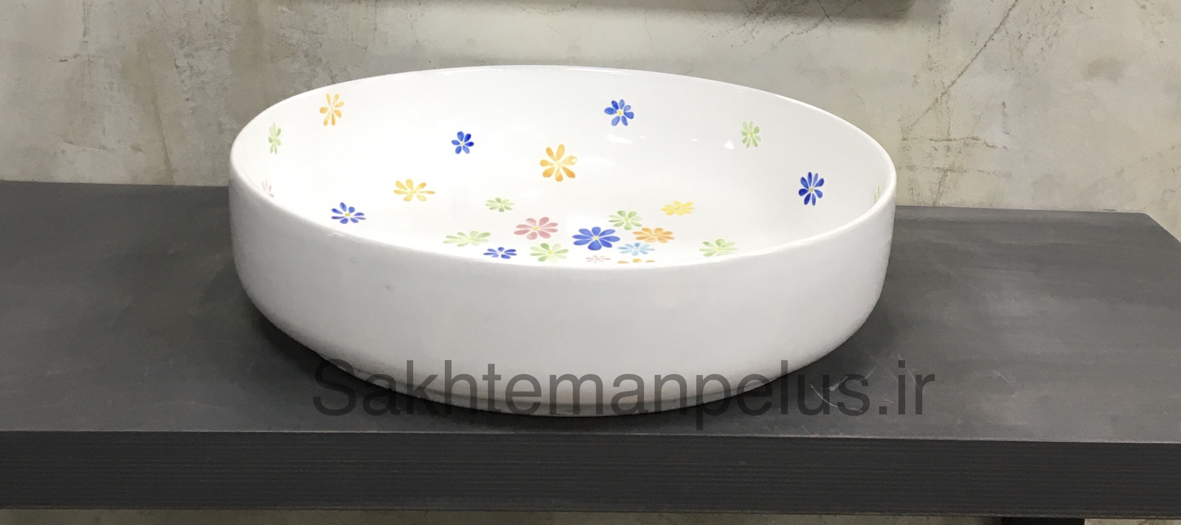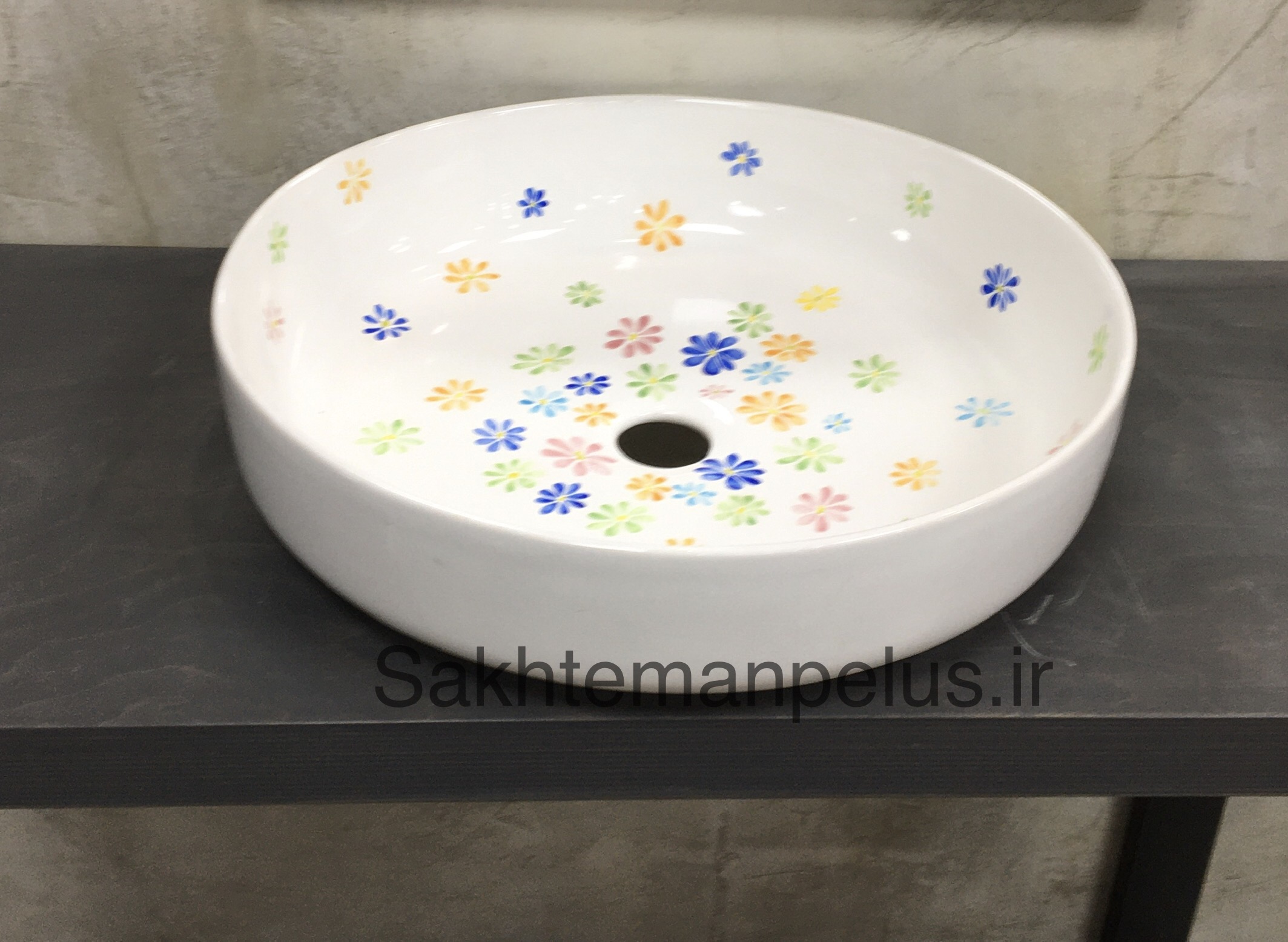 سنگ روشویی گرد طرح گل ریز نقاشی